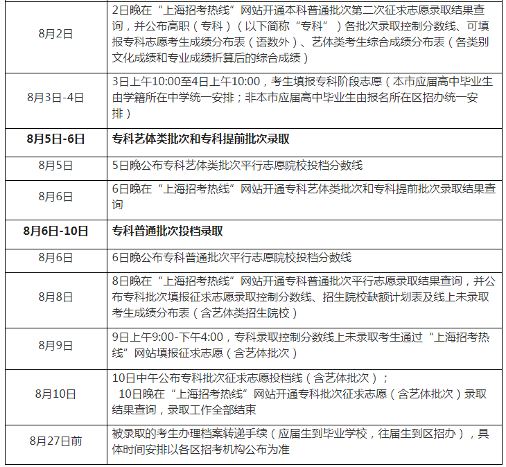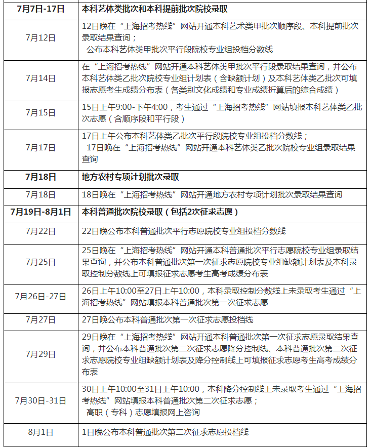 注:錄取進程請及時關注“上海招考熱線”網(wǎng)站發(fā)布信息。