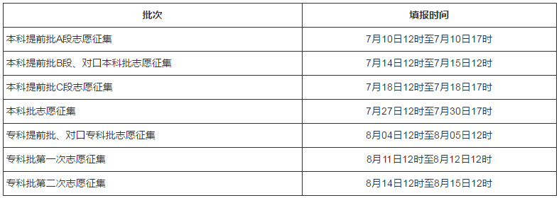 集中填報(bào)志愿時(shí)間