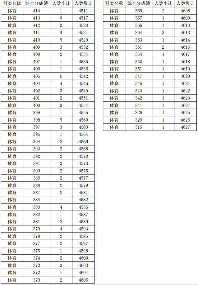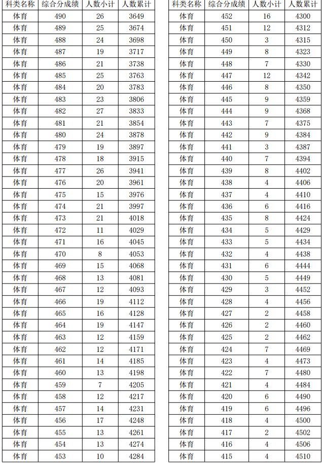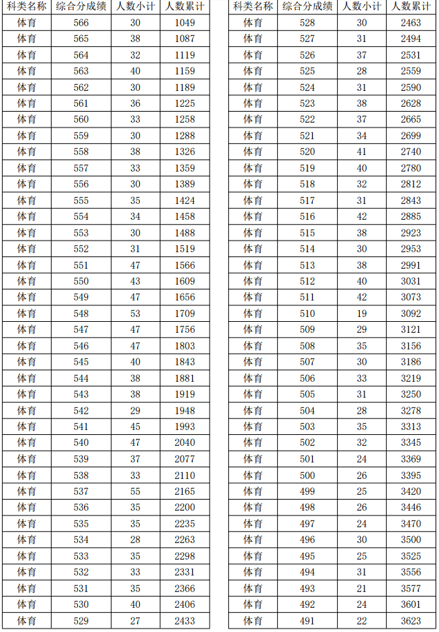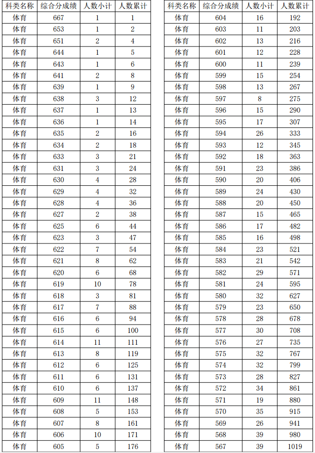 2021年浙江高考體育類考生綜合分分段表