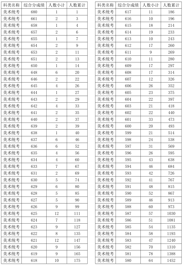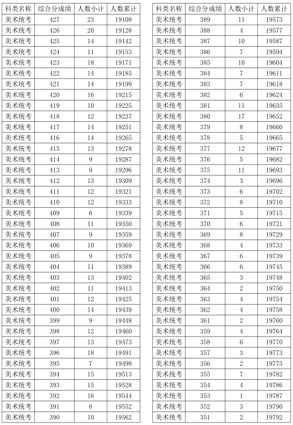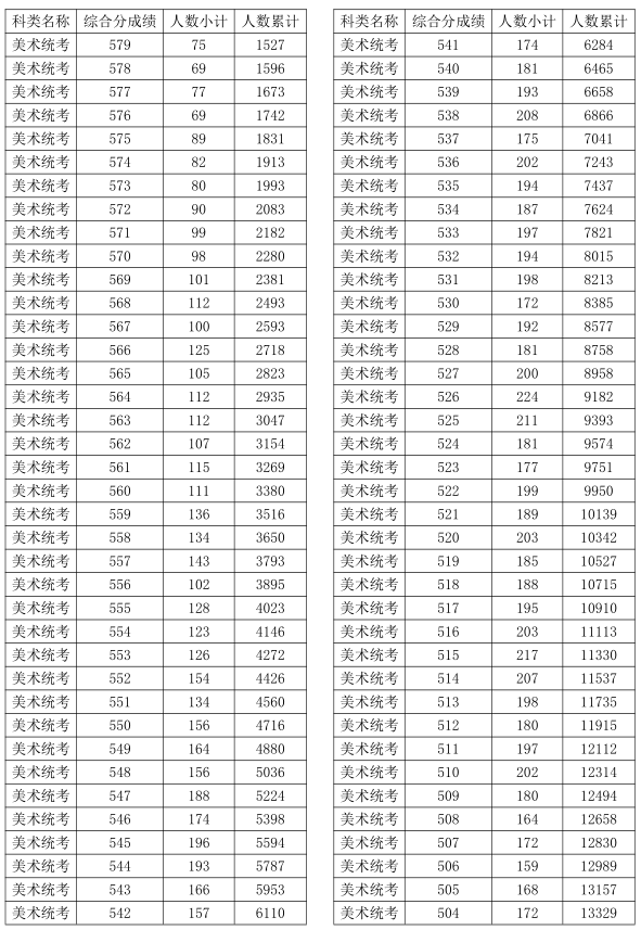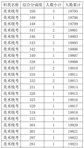 2021年浙江高考藝術(shù)類美術(shù)統(tǒng)考綜合分分段表