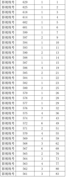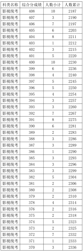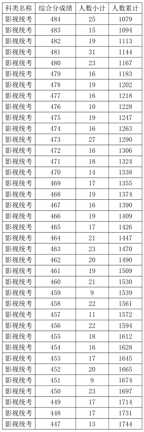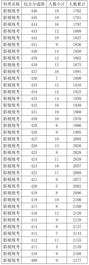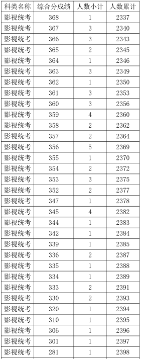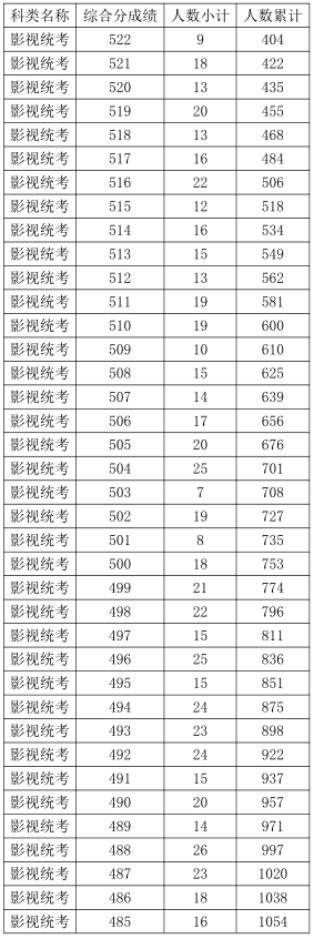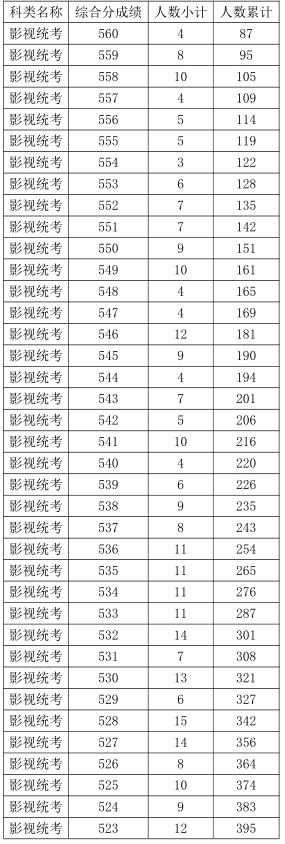 2021年浙江高考藝術(shù)類影視統(tǒng)考綜合分分段表
