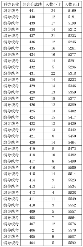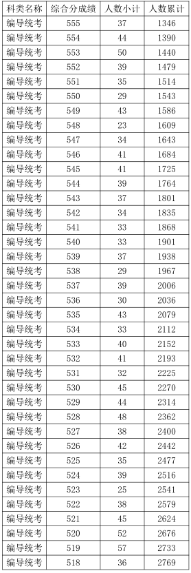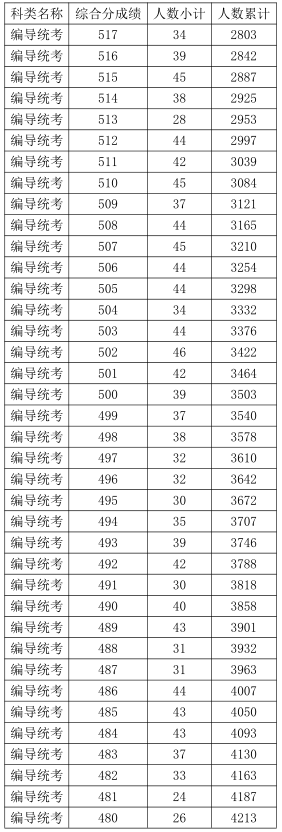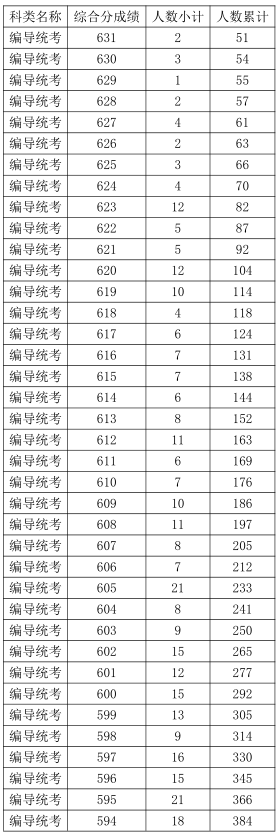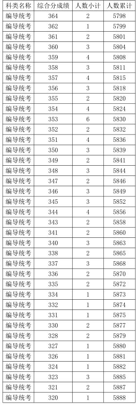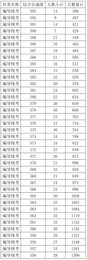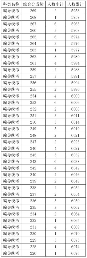 2021年浙江高考藝術(shù)類編導(dǎo)統(tǒng)考綜合分分段表