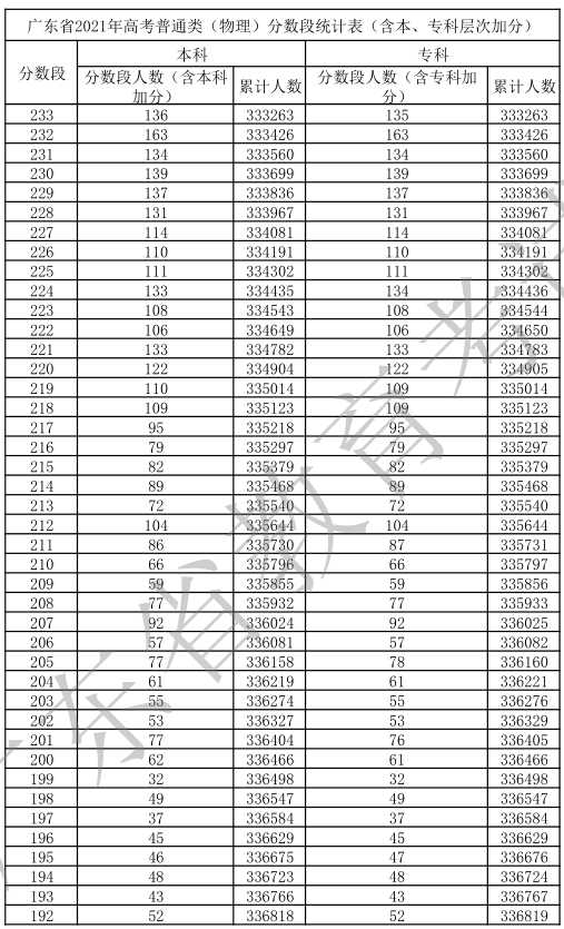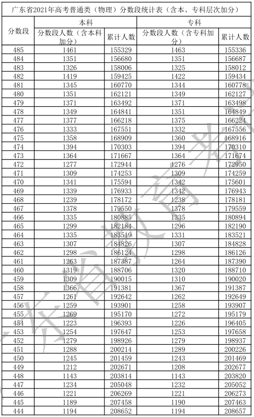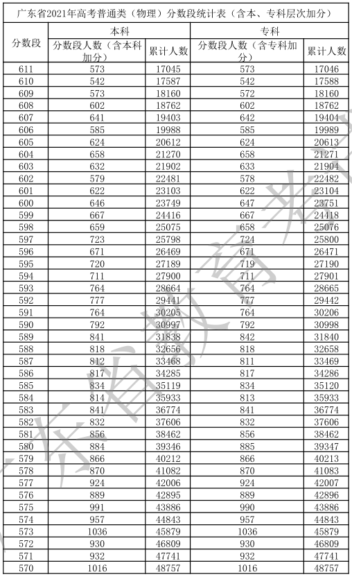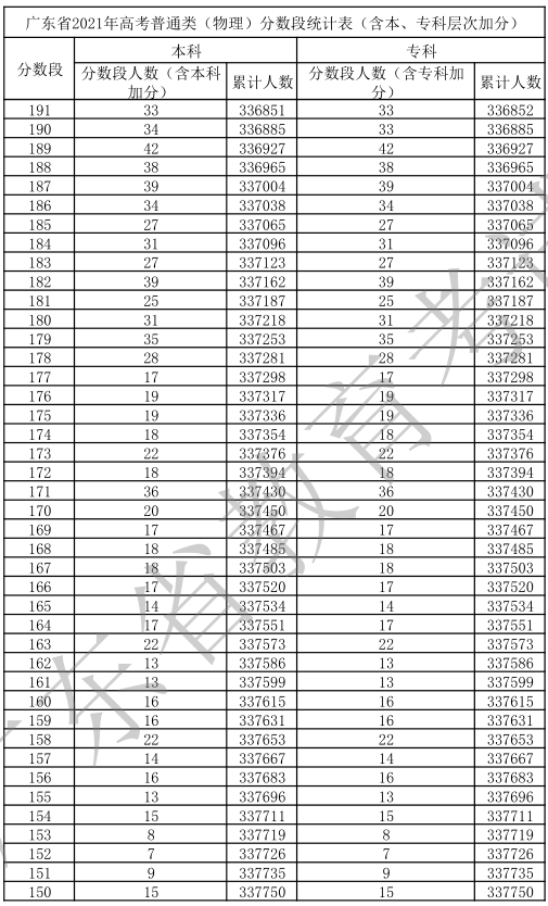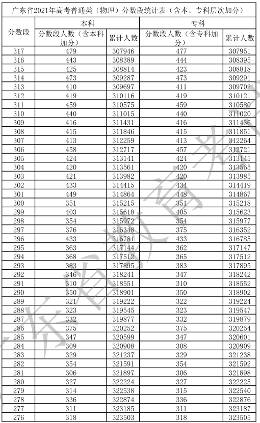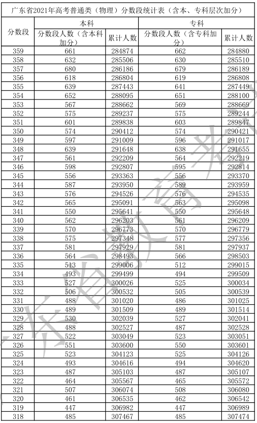 2021年廣東高考31.8萬人上線普通本科批次,一分一段表