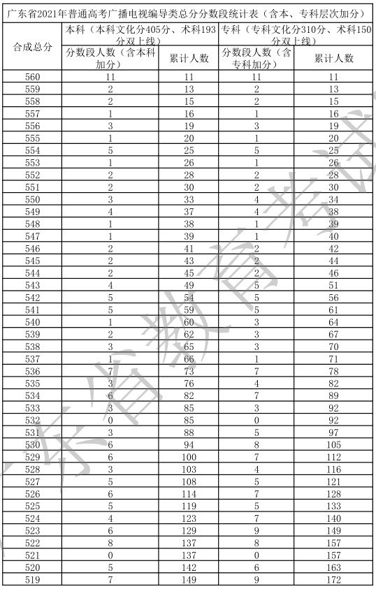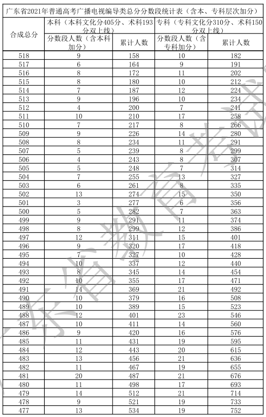 廣東省2021年高考一分一段統(tǒng)計(jì)表(廣播電視編導(dǎo)類(lèi))