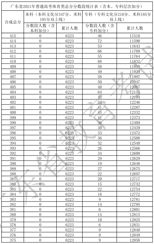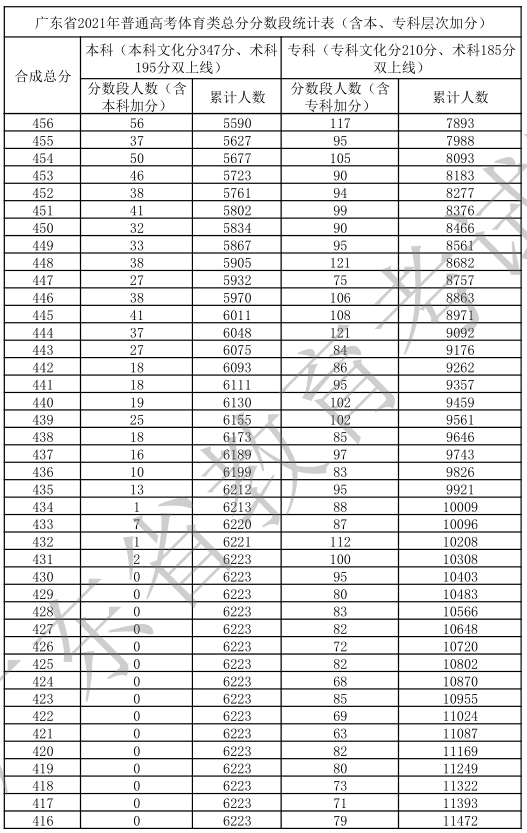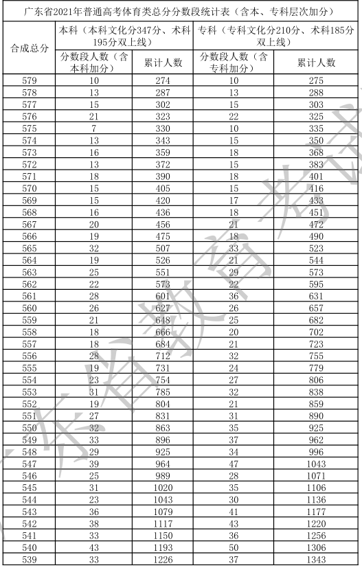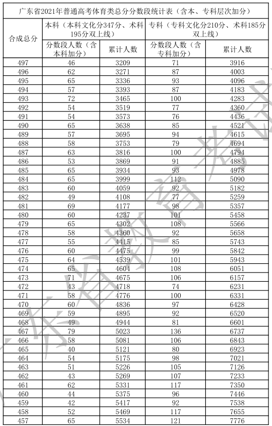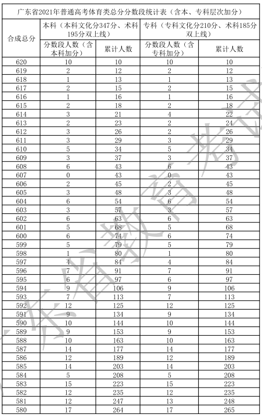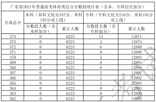 廣東省2021年高考一分一段統(tǒng)計(jì)表(體育類)