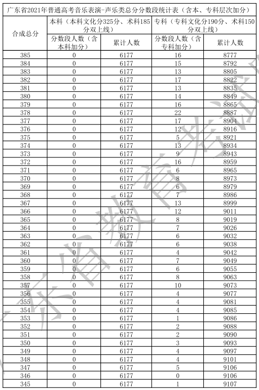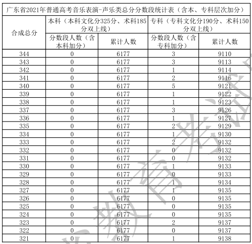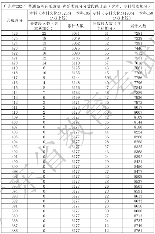 廣東省2021年高考一分一段統(tǒng)計(jì)表(音樂表演-聲樂類)