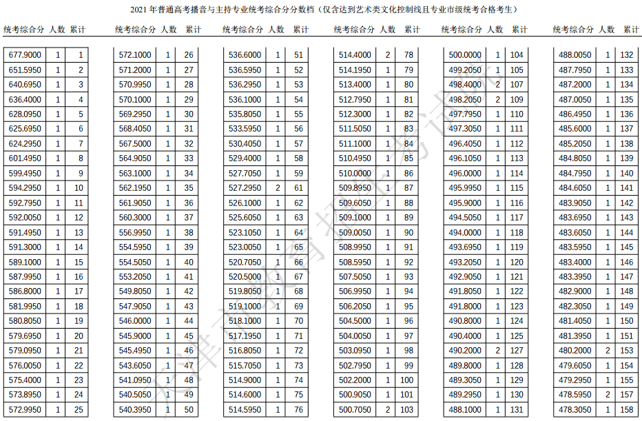 2021年天津高考播音與主持專業(yè)統(tǒng)考綜合分分?jǐn)?shù)檔