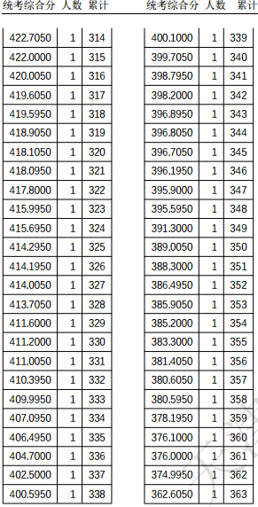 2021年天津高考體育舞蹈專業(yè)綜合分(市級統(tǒng)考專業(yè)成績)一分一段 ?(僅含達(dá)到藝術(shù)類文化控制線且專業(yè)市級統(tǒng)考合格考生)