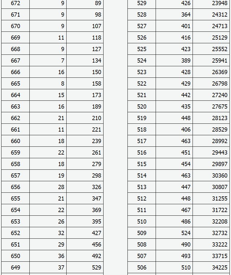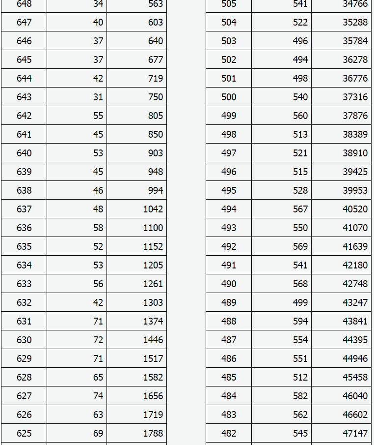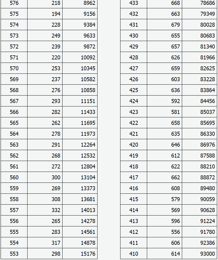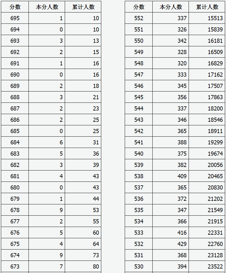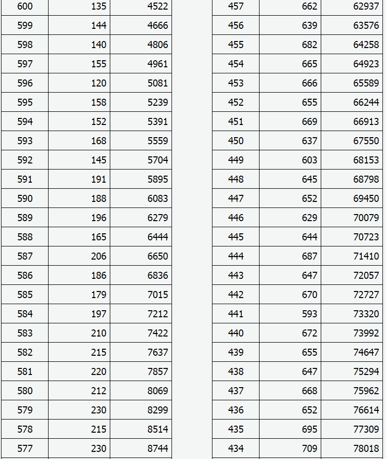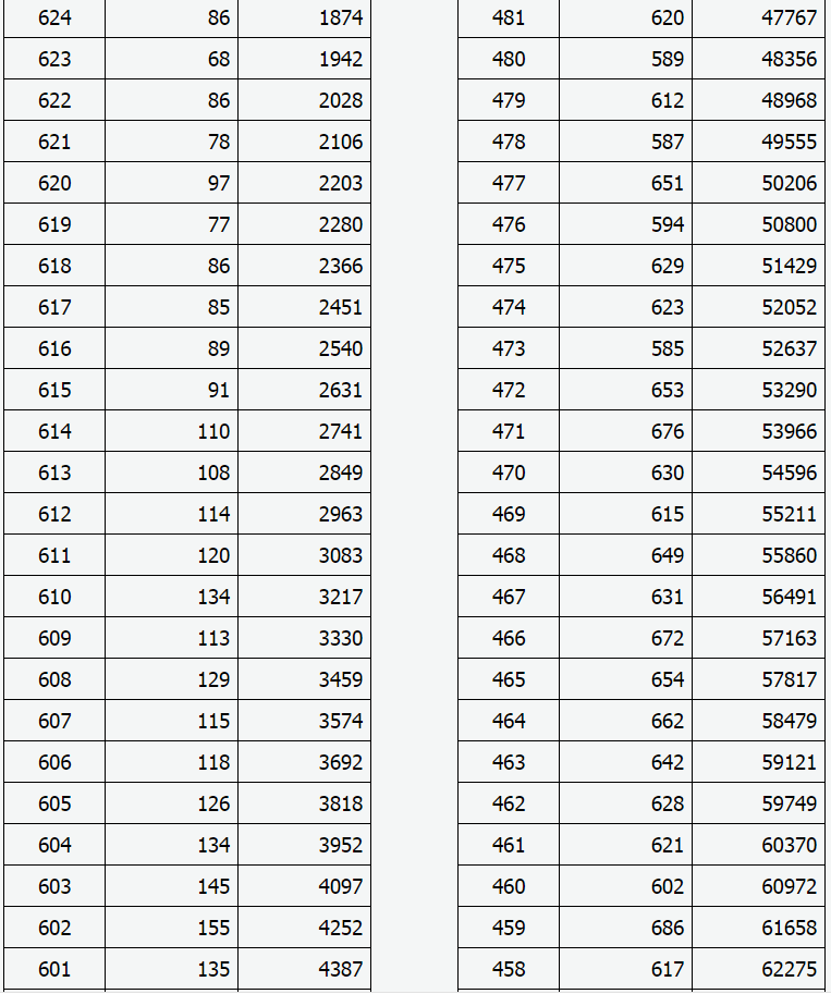 2021年山西省高考成績(理工類)一分一段表