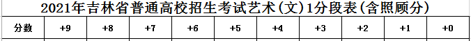 2021年吉林省高考成績藝術(shù)(文)1分段表