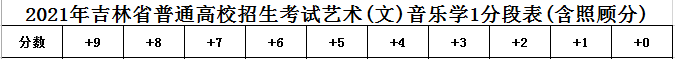 2021年吉林省高考藝術(shù)(文)音樂學(xué)綜合成績一分段表