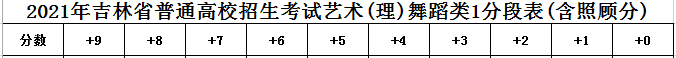 2021年吉林省高考藝術(shù)(理)舞蹈類綜合成績一分段表