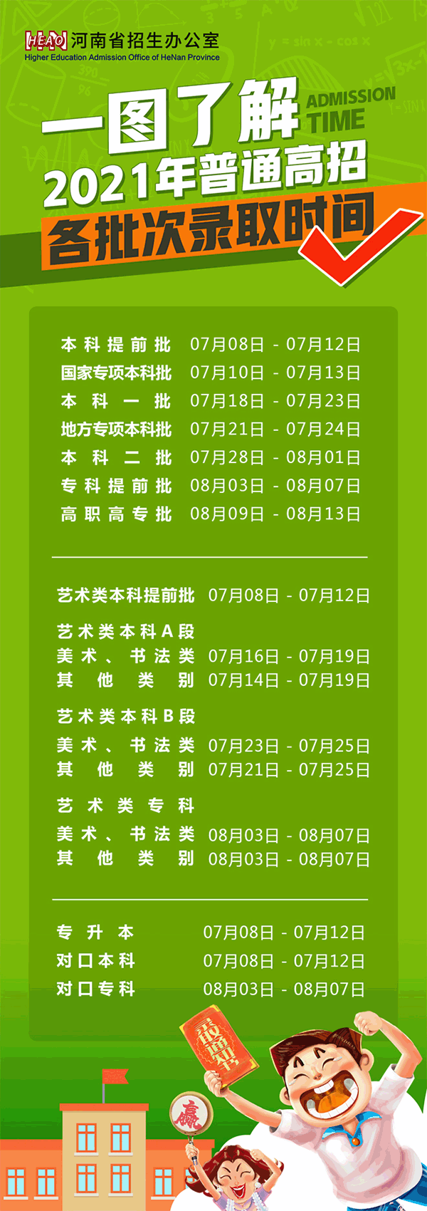 2021年河南普通高招各批次錄取時(shí)間