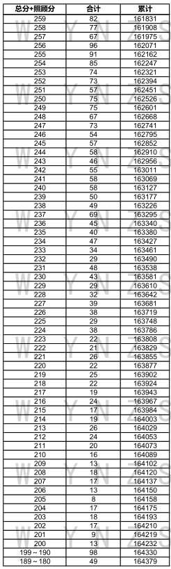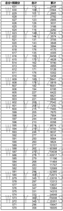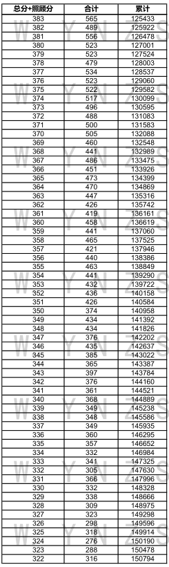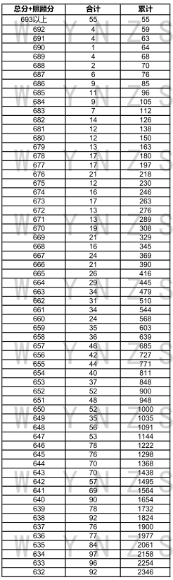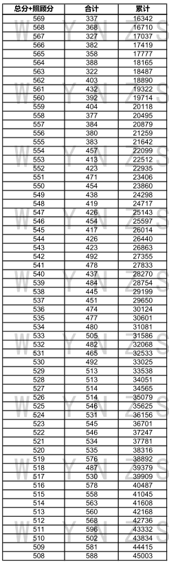 2021年云南省高考文科成績分?jǐn)?shù)段統(tǒng)計表