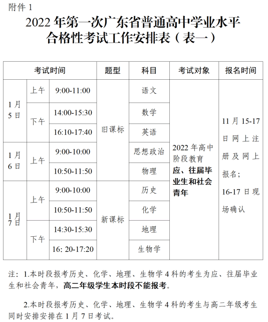 附件:1.2022年第一次廣東省普通高中學業(yè)水平合格性考試工作安排表(表一、表二)