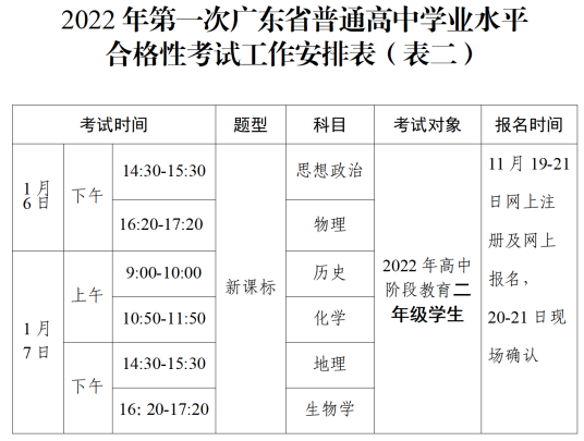 根據(jù)《關于做好2022年第一次廣東省普通高中學業(yè)水平合格性考試報名工作的通知》(粵考院函〔2021〕138號)文件精神,為做好我省普通高中學業(yè)水平考試報名工作,按照省教育考試院考試工作安排,2022年1月5日至7日將舉行2022年第一次普通高中學業(yè)水平合格性考試(下稱“合格性考試”)?,F(xiàn)將合格性考試報名工作有關事項通知如下。