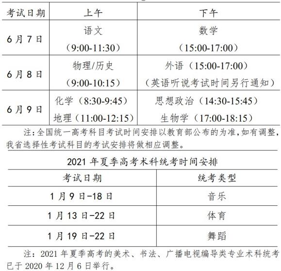 2021廣東夏季高考適應(yīng)性測試考試時間安排