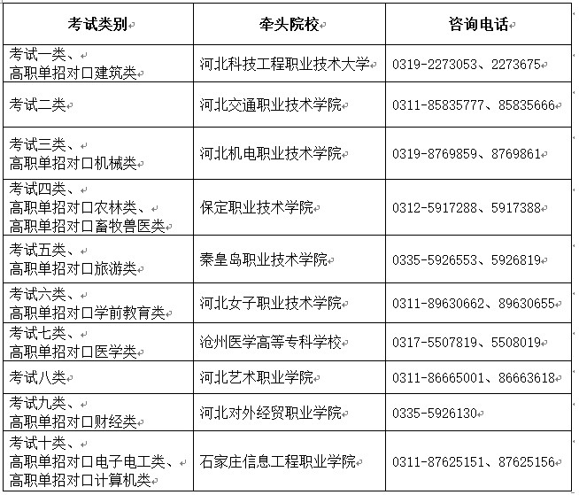 附:各考試類牽頭院校咨詢電話