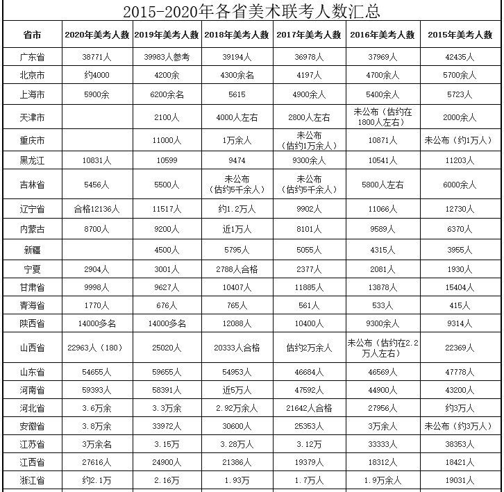 2021各省美術(shù)統(tǒng)考人數(shù)是多少?參考2015-2020美考人