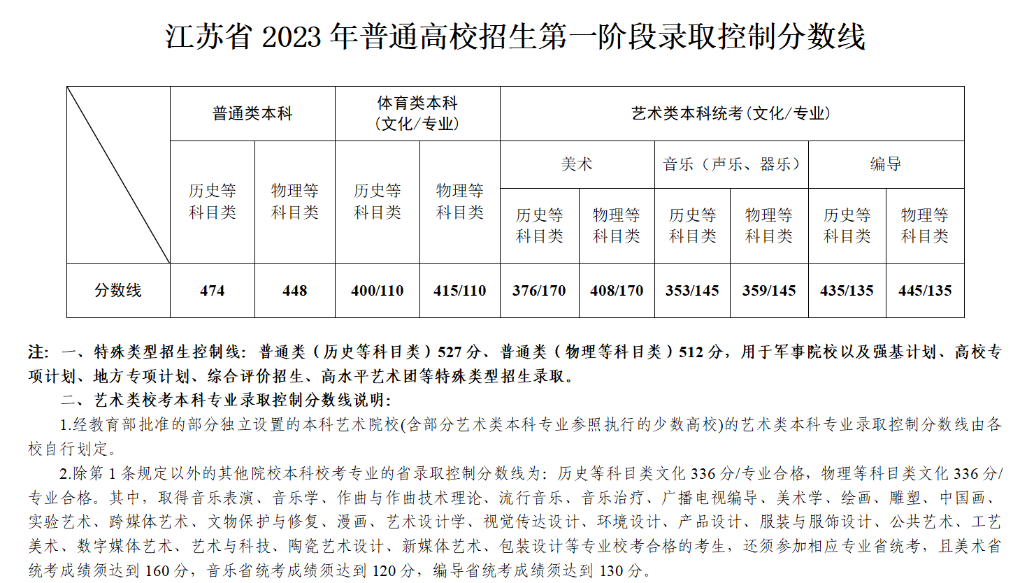 江蘇省2022年普通高校招生第一階段錄取控制分?jǐn)?shù)線,更多詳情見正文....