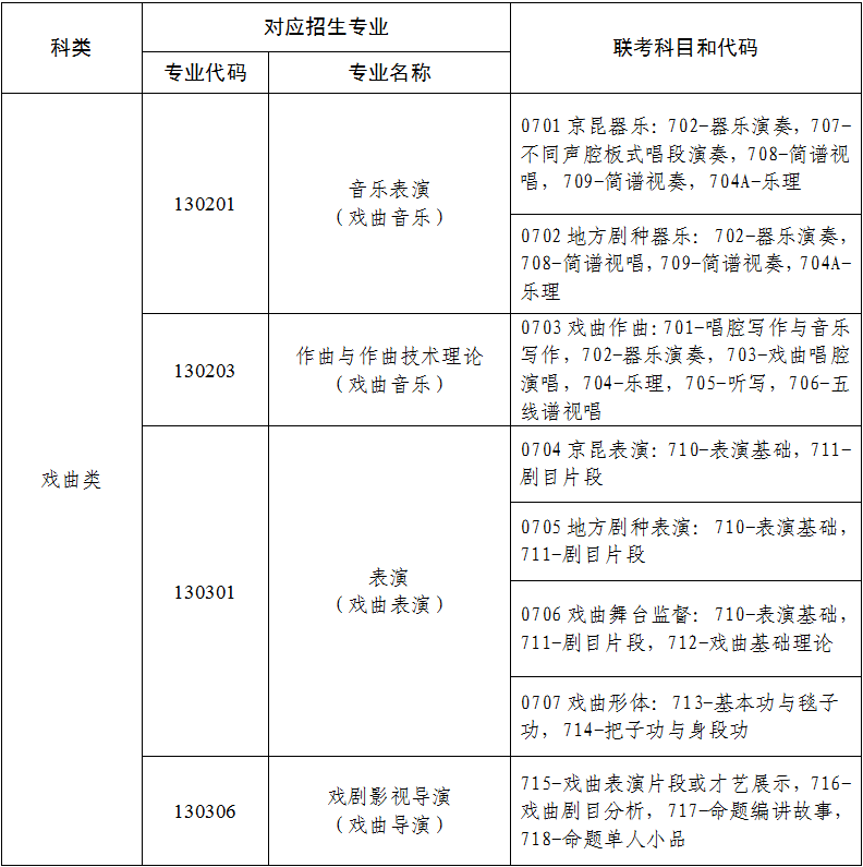 普通高等學(xué)校戲曲類本科招生專業(yè)與省際聯(lián)考科類對(duì)應(yīng)關(guān)系一覽表
