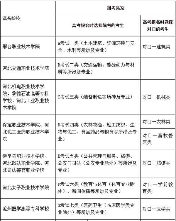 考試類是指以教育部《普通高等學(xué)校高等職業(yè)教育(??疲I(yè)目錄(2015年)》劃分的專業(yè)大類為基礎(chǔ),按照相近相通原則,分類別進行考試的一種形式。2021年我省高職單招考試招生專業(yè)繼續(xù)劃分為不同的考試類,實行院校聯(lián)合考試招生。