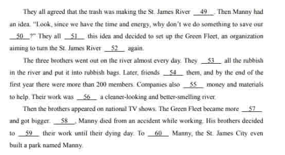 49. A. dirty B. energetic C. fresh D. deep