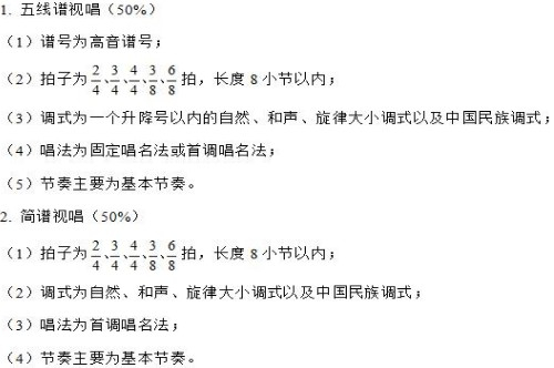 1. 音樂學(xué)專業(yè)考生自選曲目1首,音樂表演專業(yè)考生自選曲目2首(通俗演唱現(xiàn)場抽唱1首),作品內(nèi)容積極健康;