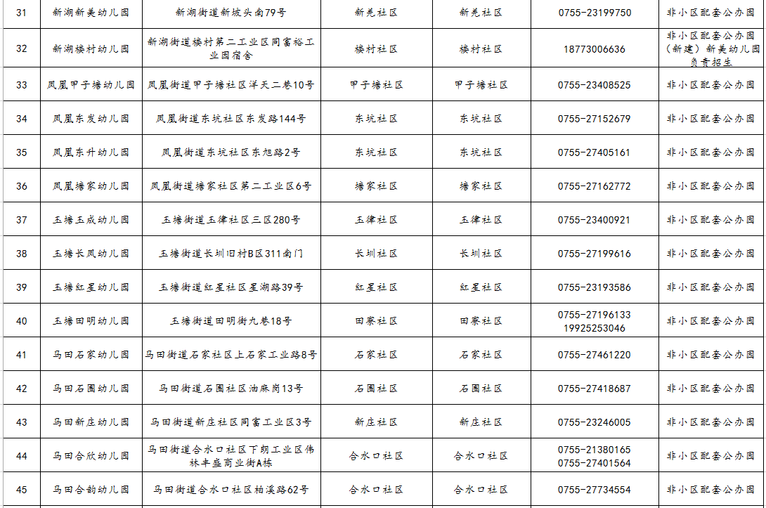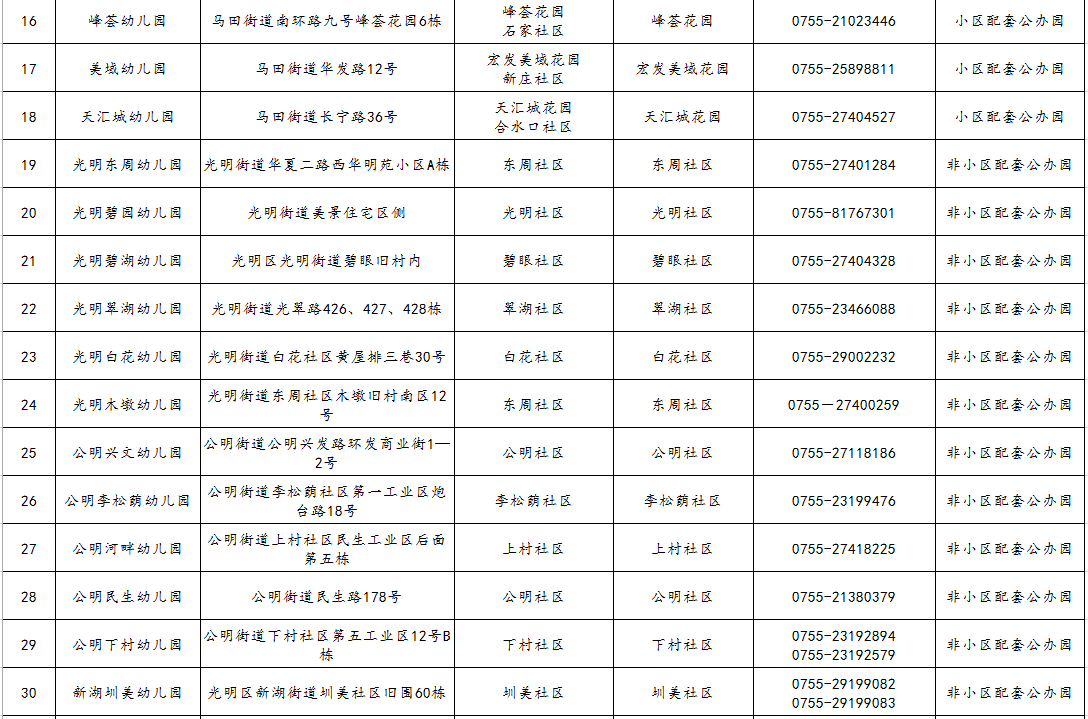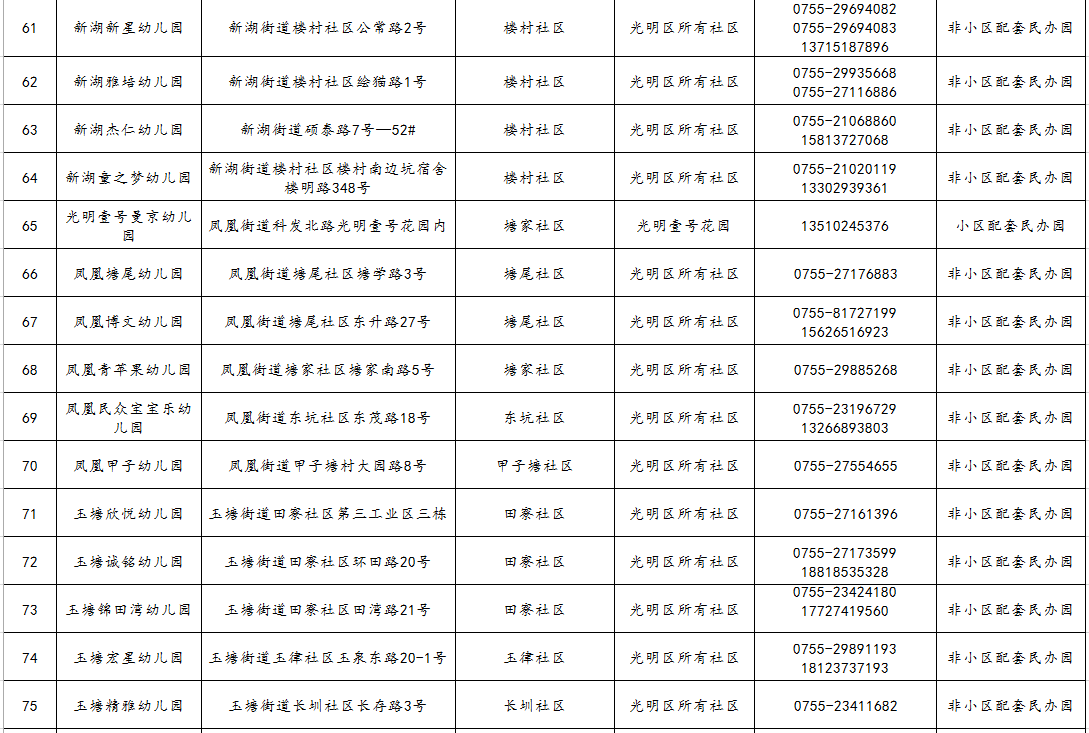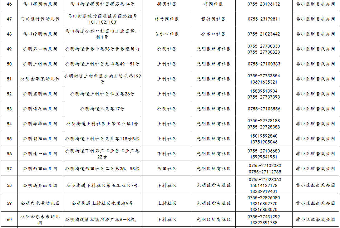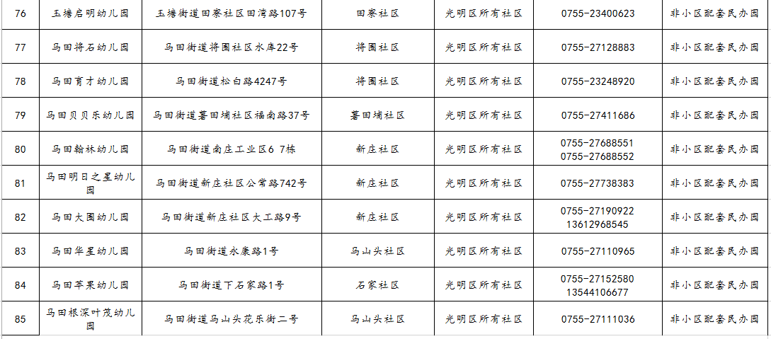 光明區(qū)幼兒園2021年秋季學(xué)期招生范圍一覽表
