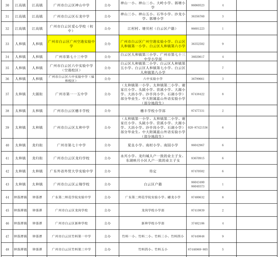 2021年白云區(qū)公辦初中(含初中含小區(qū)配套學(xué)校)招生計(jì)劃