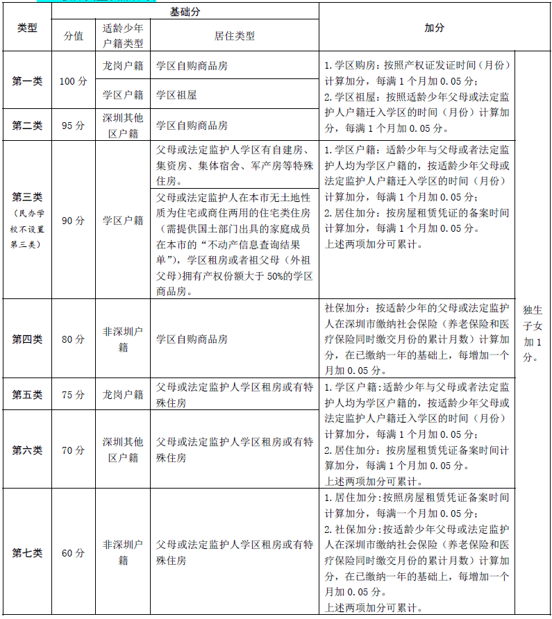 龍崗區(qū)2021年公辦學(xué)校初一入學(xué)積分規(guī)定