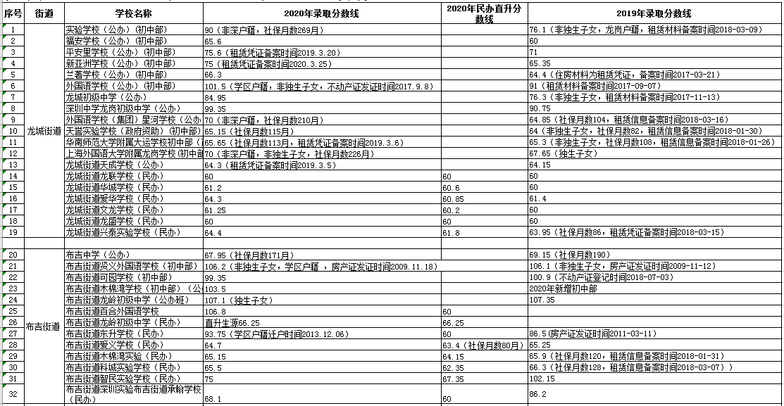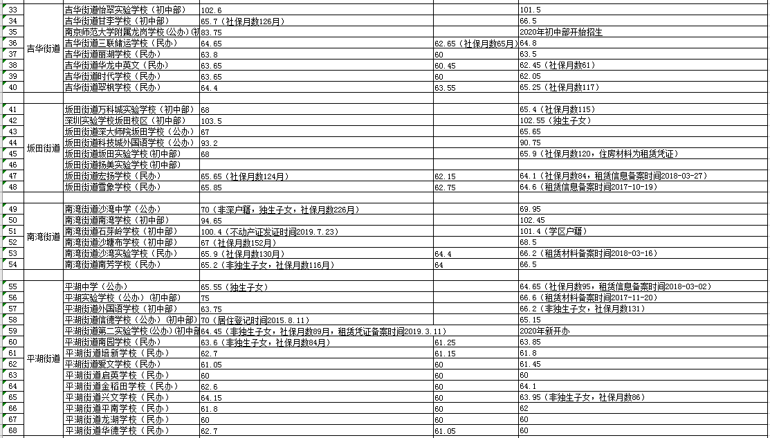 龍崗區(qū)2019-2020年初一學位(公辦+民辦)申請錄取分數(shù)