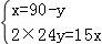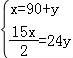 8.某生產(chǎn)車(chē)間共90名工人,每人每天平均能生產(chǎn)螺栓15個(gè)或螺帽24個(gè),要使1個(gè)螺栓配套2個(gè)螺帽,應(yīng)如何分配工人才能使每天生產(chǎn)的螺栓和螺帽剛好配套,設(shè)生產(chǎn)螺栓x人,生產(chǎn)螺帽y人,由題意列方程組( ?。?/span>