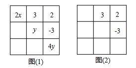(1)在圖中各行、各列及對(duì)角線上三個(gè)數(shù)之和都相等,請(qǐng)你求出x,y的值.