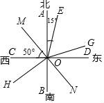 17.如圖,OD、OC、OB、OA分別表示東西南北四個方向,OM的方向是西偏北50°,OE的方向是北偏東15°,OE是∠MOG的平分線,∠MOH=∠NOH=90°.