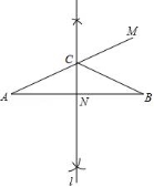 AB為半徑作弧,連接弧的交點得到直線l,在直線l上取一點C,使得∠CAB=25°,延長AC至M,