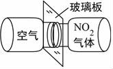 1.兩只相同的集氣瓶中分別裝有空氣和紅棕色二氧化碳(NO2)氣體,用玻璃板隔開后按圖示水平放置,抽去玻璃板、保持兩瓶口緊貼靜置較長時間后,兩瓶中氣體顏色變得相同。已知瓶中NO2氣體的密度比瓶中空氣的大,下列說法正確的是( ?。?/span>