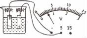 4.在燒杯中加入鹽水,然后將連在電壓表上的銅片和鋅片潛入水中,這樣就制成一個電池,其現(xiàn)象如圖所示,則下列說法錯誤的是( ?。?/span>