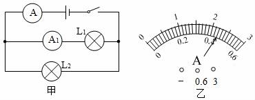 12.如圖甲所示,開(kāi)關(guān)閉合后,兩個(gè)電流表指針偏轉(zhuǎn)均為(乙)圖所示,則通過(guò)L1和L2的電流分別為( ?。?/span>