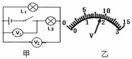 23.在如圖甲所示電路中,當(dāng)閉合開(kāi)關(guān)后,兩個(gè)電壓表指針偏轉(zhuǎn)均為圖乙所示,請(qǐng)根據(jù)表盤讀數(shù)回答下列問(wèn)題: