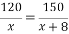 6.(3分)甲、乙二人做某種機械零件,已知每小時甲比乙少做8個,甲做120個所用的時間與乙做150個所用的時間相等,設甲每小時做x個零件,下列方程正確的是( ?。?/span>