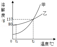 C.t2℃時(shí),溶液Ⅱ中含乙37g