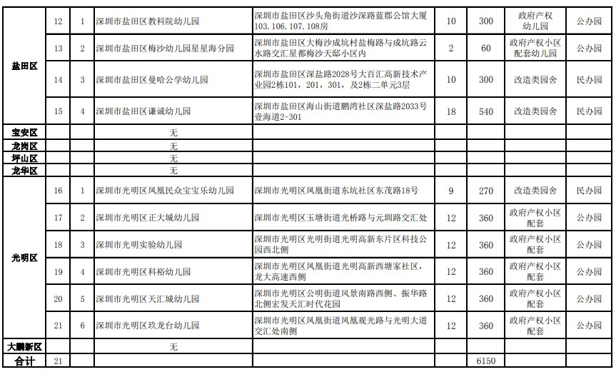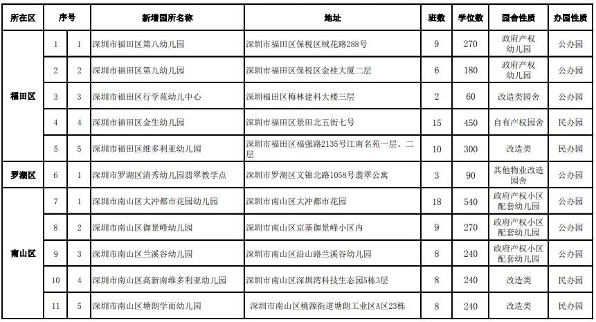 近日,深圳市教育局公布2020年8月-9月期間,新增21所幼兒園名稱、地址,班數(shù)、學位數(shù),辦園性質(zhì),辦園性質(zhì)等內(nèi)容。新增6150個學位!