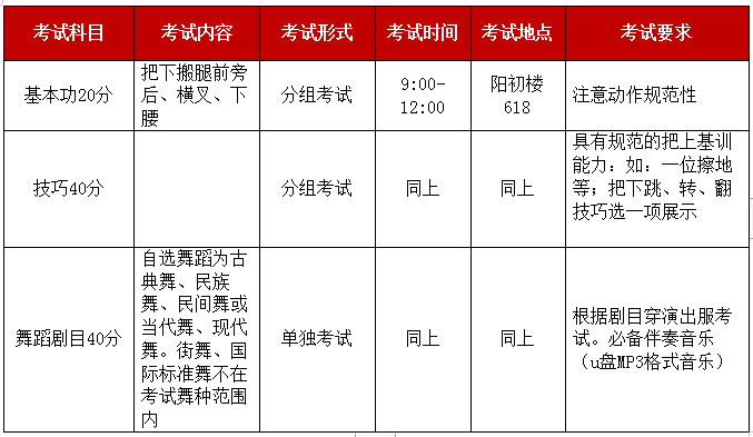 【注:劇目時(shí)間不得超過2分鐘,女生身高不低于160cm,男生身高不低于 165cm??忌枳詭б魳钒樽郩盤,考生一律穿體操服、女生需盤發(fā),劇目服裝自行準(zhǔn)備?!?/p>