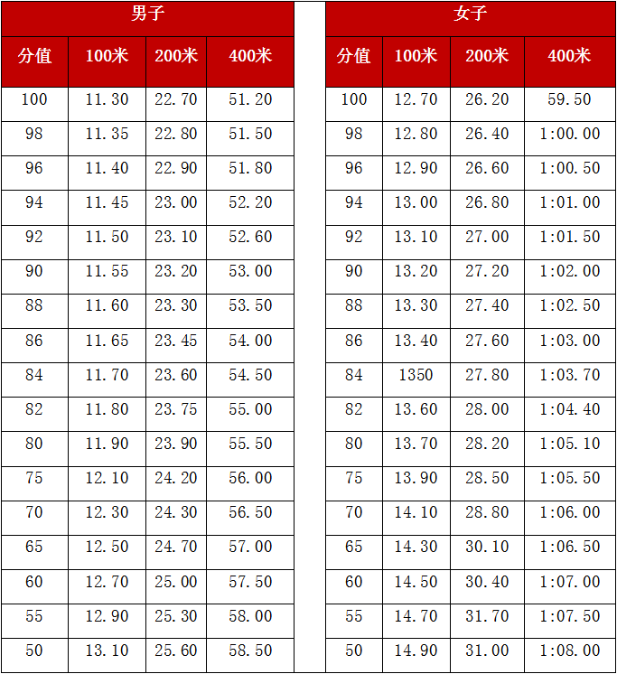 田徑項(xiàng)目考核內(nèi)容與評(píng)分標(biāo)準(zhǔn)
