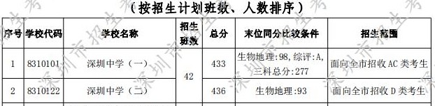 2019-2020年深圳中學(xué)中考錄取分?jǐn)?shù)線