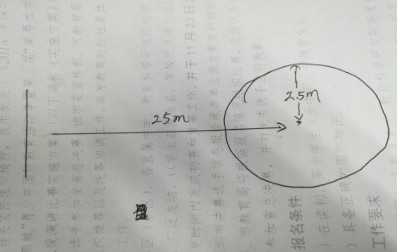 籃球場(chǎng)地上的標(biāo)志①、②、③為以40厘米為半徑的圓圈。①、③圓圈中心點(diǎn)到端線內(nèi)沿的距離為6米,到邊線內(nèi)沿的距離為2米。②在中線上,到中圈中心點(diǎn)的距離為2.8米。