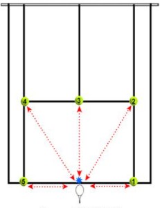 ②評(píng)價(jià)標(biāo)準(zhǔn):對(duì)底線正手擊球、底線反手擊球、網(wǎng)前正手截?fù)?、網(wǎng)前反手截?fù)?、中?chǎng)高壓球進(jìn)行技術(shù)評(píng)定。