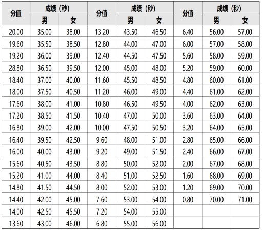 例如,某男考生100米自由泳58秒12得分100分,該項(xiàng)目最后得分:100分*40%=40分。