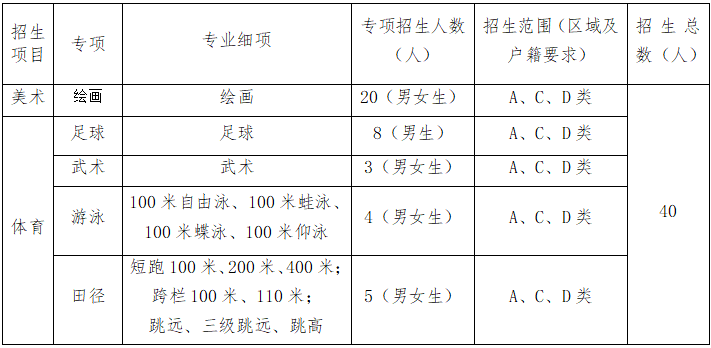 3. 學(xué)校嚴(yán)格按照市教育局審定并向社會(huì)公布的二類(lèi)自主招生計(jì)劃依法依規(guī)錄取,各專(zhuān)項(xiàng)之間的招生計(jì)劃不互相調(diào)劑。各項(xiàng)招生不降低標(biāo)準(zhǔn)、不增補(bǔ)計(jì)劃,未完成的招生計(jì)劃直接轉(zhuǎn)為普通生招生計(jì)劃。